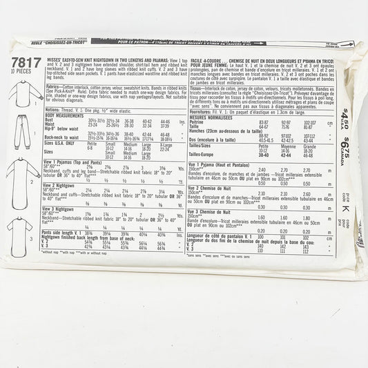 Pajamas - Simplicity 1980s Sewing Pattern 7817