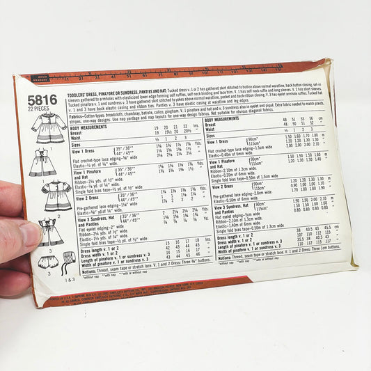 Simplicity 5816 Sewing Pattern -Toddlers' Dress, Pinafore or Sundress Panties and Hat (2 Size) - 1982