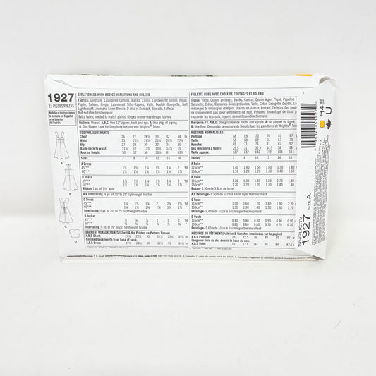 Simplicity 1927 Sewing Pattern - Children's Dress - Sizes 7-16