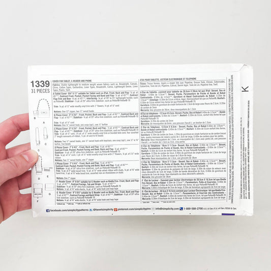 Simplicity 1339 Sewing Pattern - Cover for Tablet, E-Reader and Phone