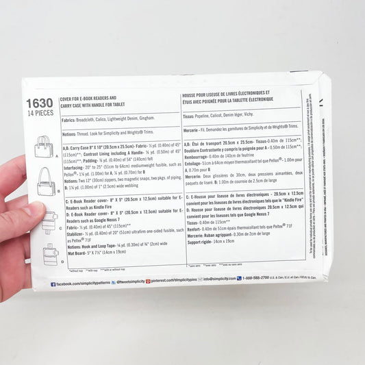 Simplicity 1630 Sewing Pattern - Cover for E-Book Reader and Carry Case with Handle for Tablet