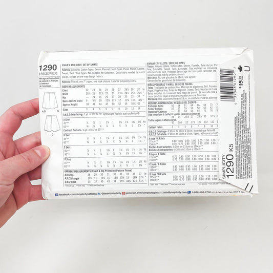 Simplicity 1290 Sewing Pattern - Child's and Girls' Set of Skirts