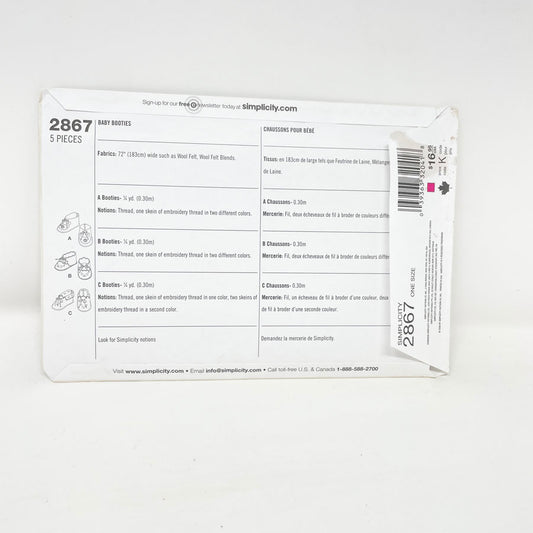 Simplicity 2867 Sewing Pattern - Baby Booties