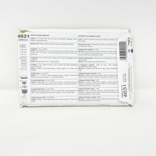 Simplicity 4631 Sewing Pattern - Nursery Organizers