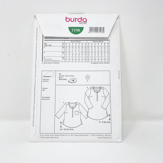 2012 Burda 7198 Sewing Pattern - Top - Sizes 10-22