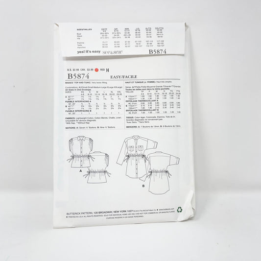 2013 See & Sew B5874 Sewing Pattern - Top - Sizes XS-XL