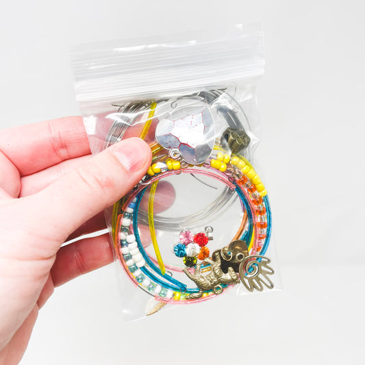 Beaded Bracelets, Charms, and Wire Bundle