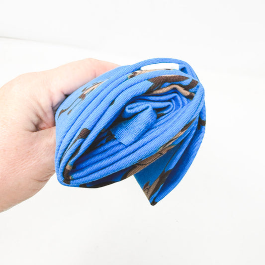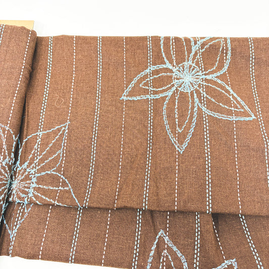 49" x 53" Blue Stitched Floral & Stripe Brown Mid-Weight Fabric