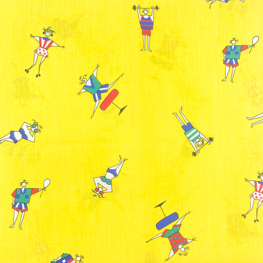 2 Yds x 44" Yellow Playful Figures Cotton Fabric