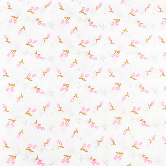 2.25 Yds x 46" White and Pink Floral Cotton Fabric
