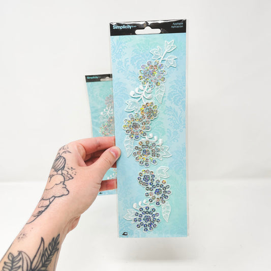 Simplicity Applique - White Sequined Flowers (1)