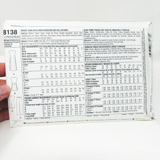 2016 Simplicity Sewing Pattern - Tunic/Pant - 8138 - Size 14-22
