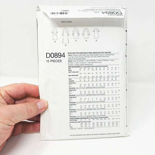 2018 Simplicity Sewing Pattern - Shirt Dress - D0894 - Size 16-24