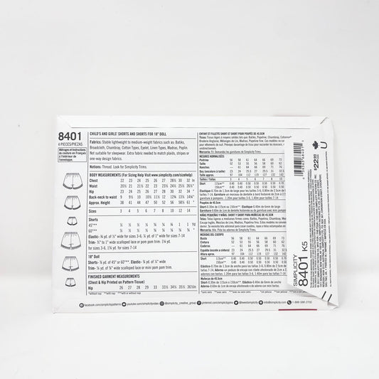 Simplicity 8401 American Girl Learn to Sew Shorts