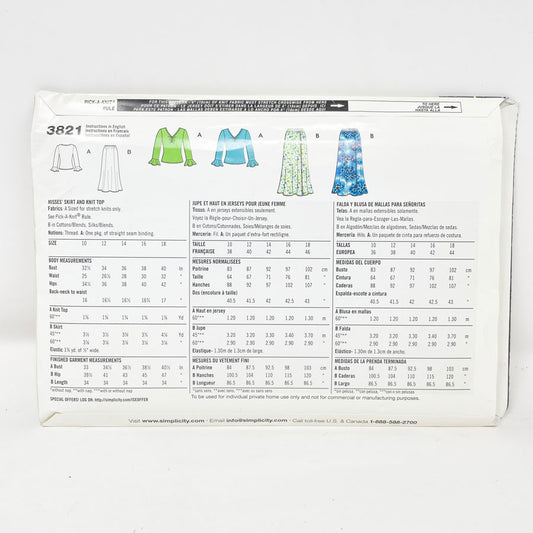 2007 Simplicity 3821 Sewing Pattern - Top/Skirt (10-18)