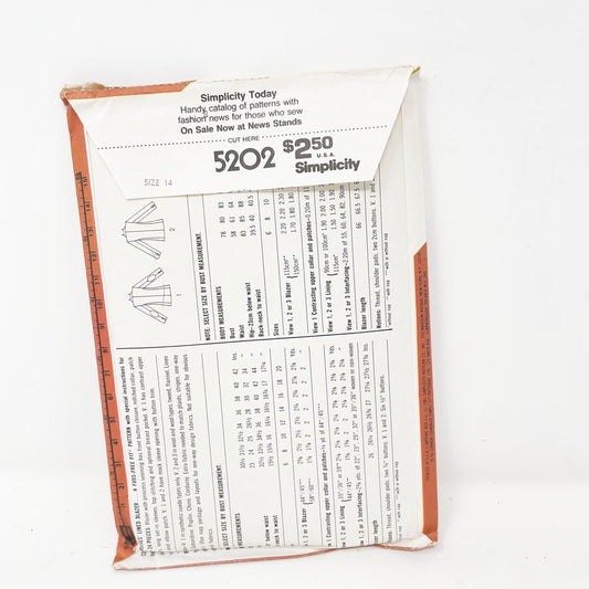 Vintage 1981 Simplicity Jacket - 5202 - Size 14