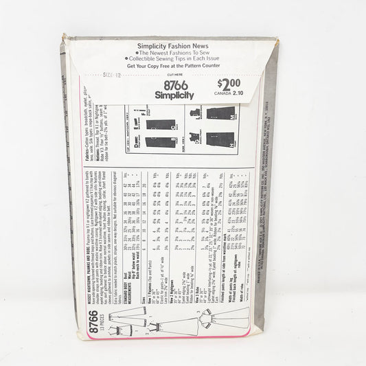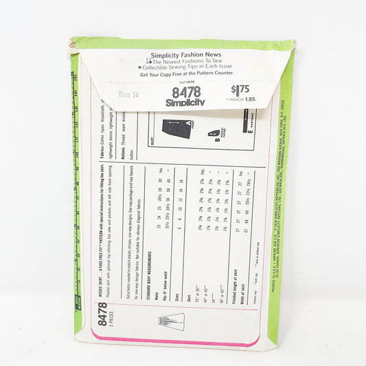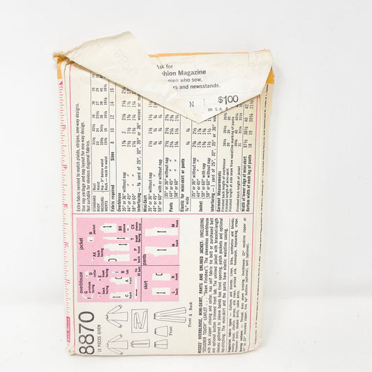 Vintage 1970 Simplicity Pants/Skirt/Jacket - 8870 - Size 18