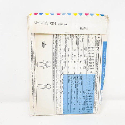 Vintage 1980 McCalls Dress - 7214 - Size Small