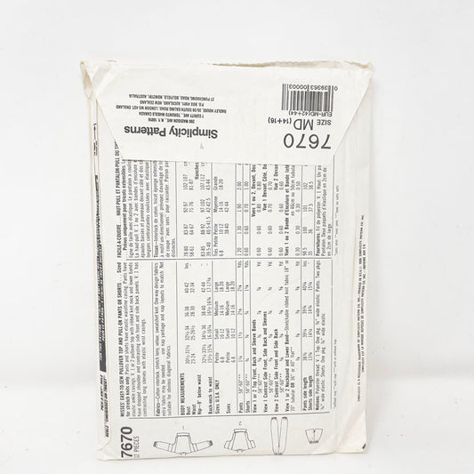 Vintage 1986 Simplicity Workout - 7670 - Size 14-16