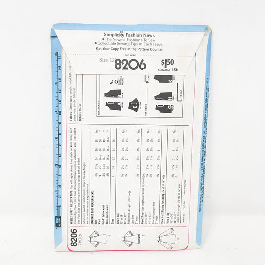 Vintage 1977 Simplicity Top - 8206 - Size 12