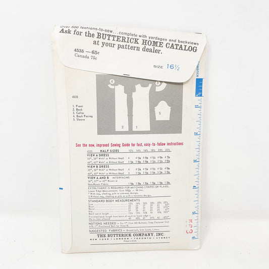 Vintage 1960s Butterick Dress - 4535 - 16.5