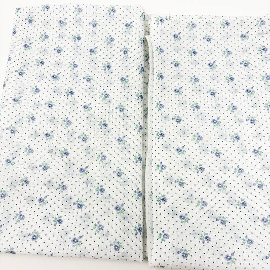 44" x 1 yd. Blue Flowers and Dots Poly Blend Gauze Fabric