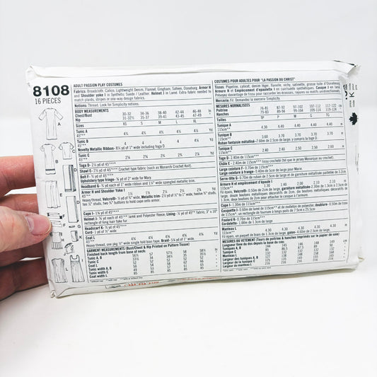 1998's Costumes 8108 Simplicity Sewing Pattern