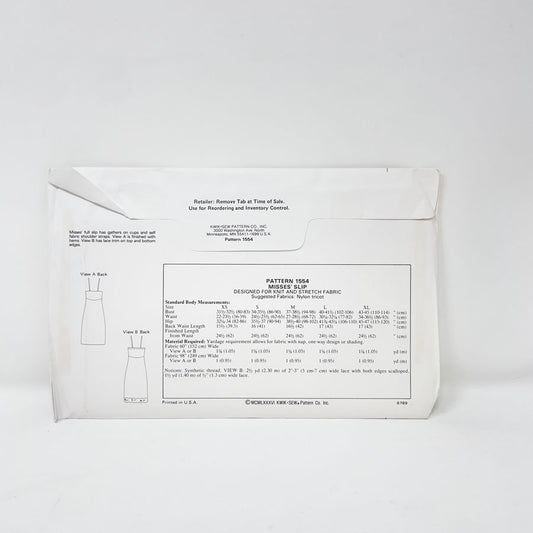 1986 Kwik Sew 1554 Sewing Pattern - Slip - XS-XL