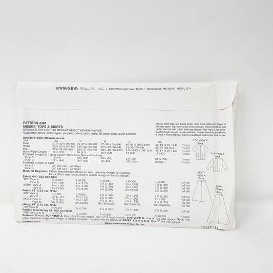 2016 Kwik Sew 3381 Sewing Pattern - Top and Skirt - XS-XL