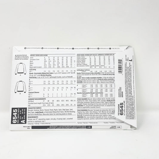 2018 New Look 6545 Sewing Pattern - Jacket - Sizes 6-18