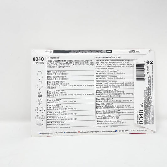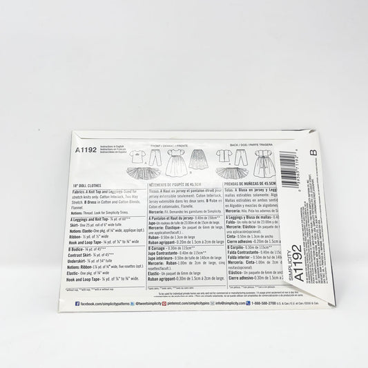 It's So Easy 18" Doll Clothing Patterns by Simplicity - Pick a Design