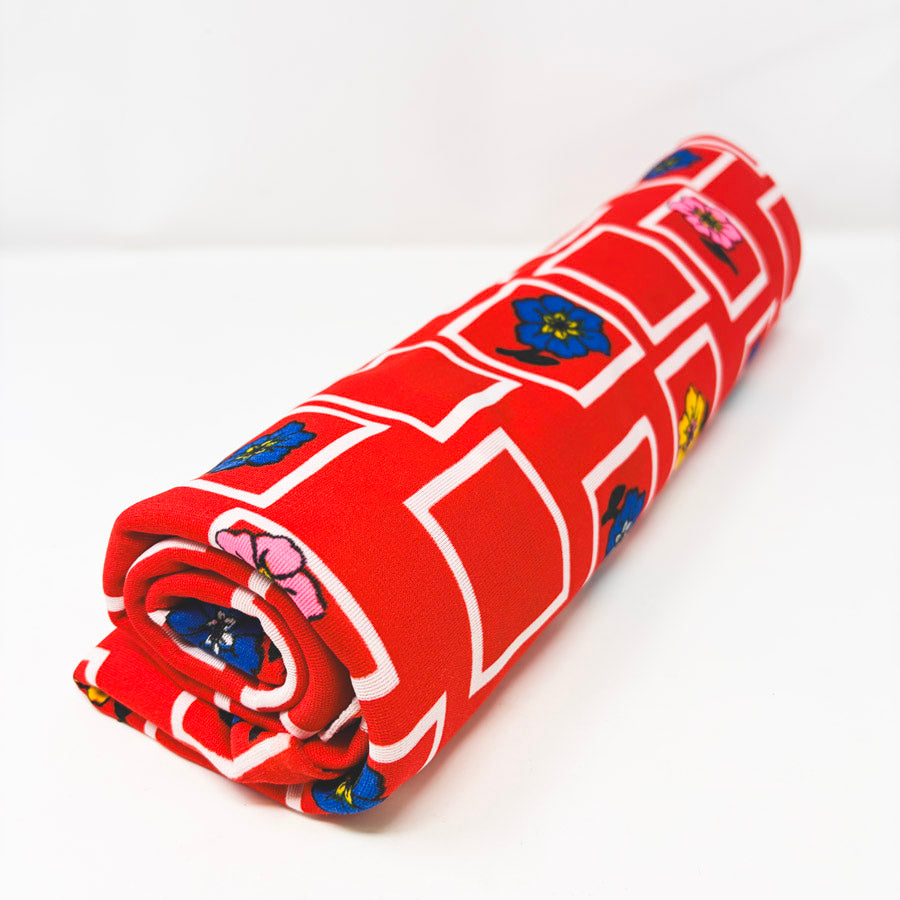 2 Yds x 56" Red Geometric and Floral Stretch Polyester Fabric