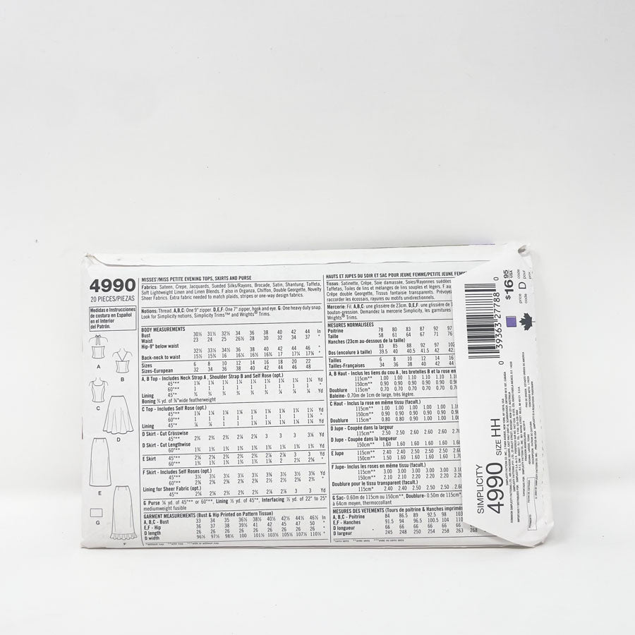 2004 Simplicity 4990 Sewing Pattern - Skirt/Top/Purse - Sizes 6-12