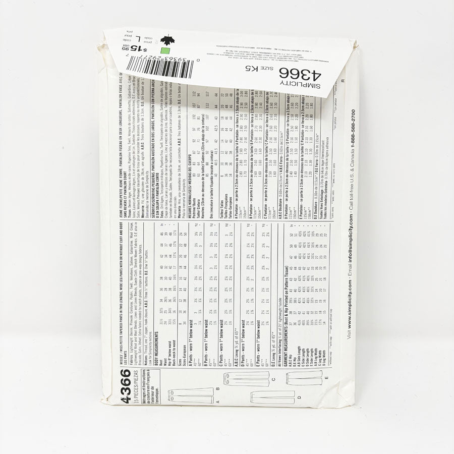 2005 Simplicity Sewing Pattern - Pants - 4366 - Size 8-16