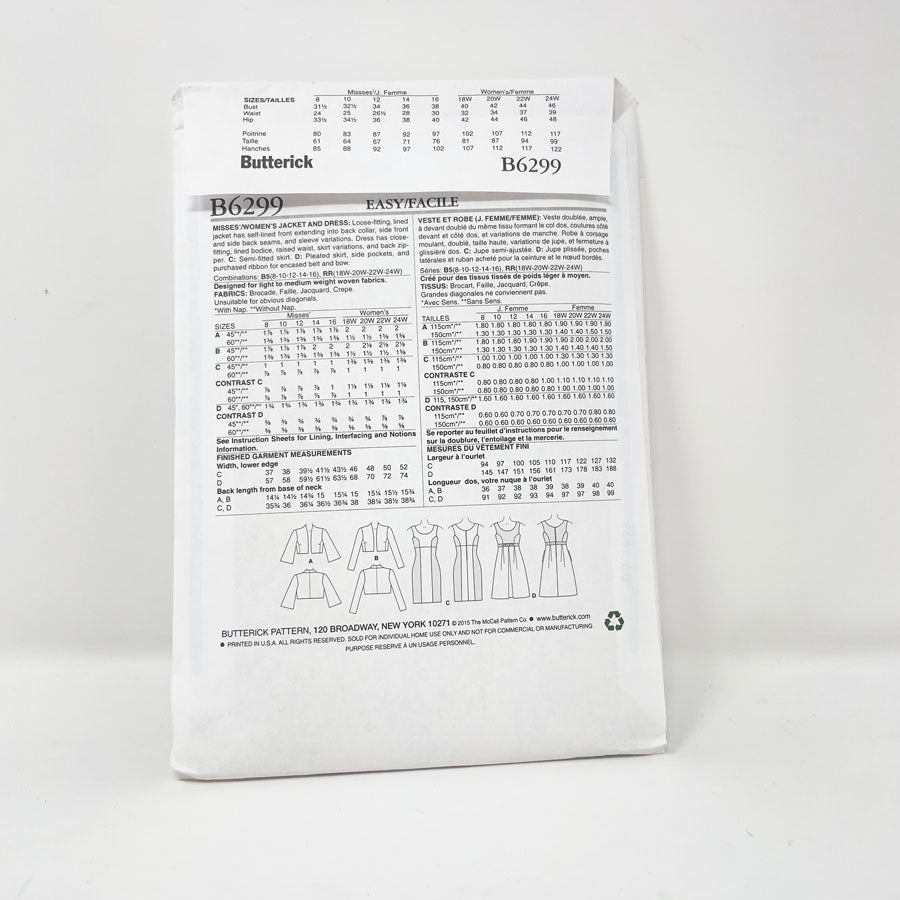 2015 Butterick Sewing Patterns B6299 - Misses Jacket and Dress