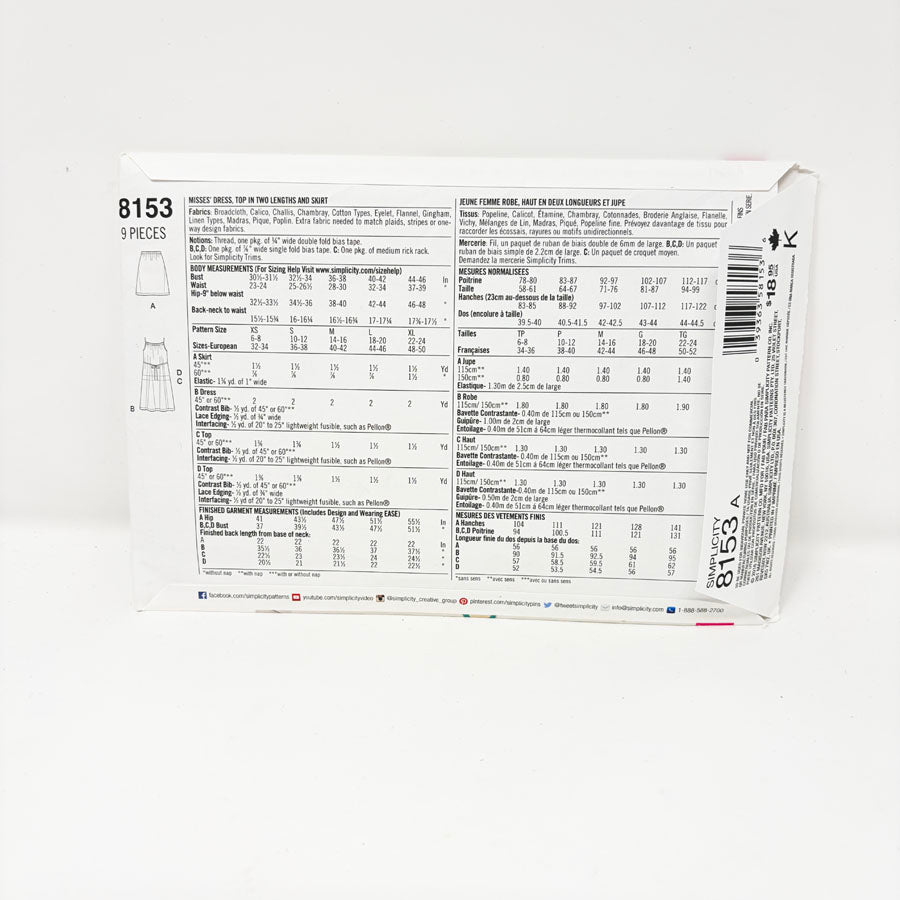 2016 Simplicity/Dottie Angel Sewing Pattern - Top/Dress - 8153 - Size XS-XL