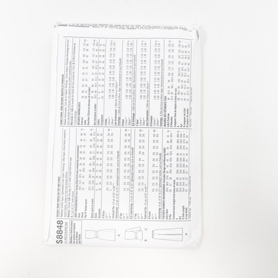 2019- Simplicity-S8848- Wrap Dress,Top, or Pants- Size 16-24