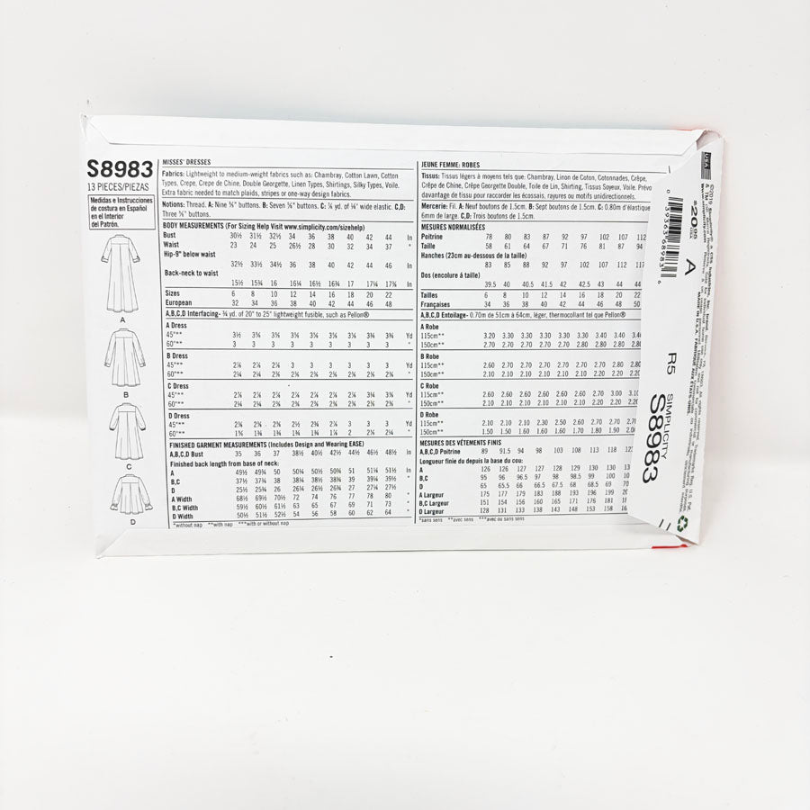 2019 Simplicity Sewing Pattern - Dress - S8983 - Size 14-22