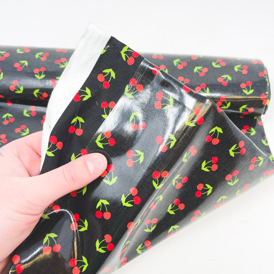 24" x 28" Cherries London Calling Design 17691 Laminated Fabric Remnant