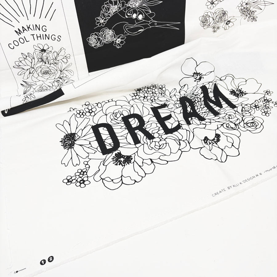 44" x 25" Create w/Black & White Flowers Fabric Panel for Moda