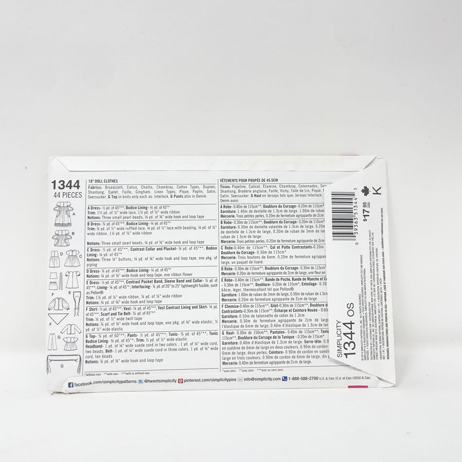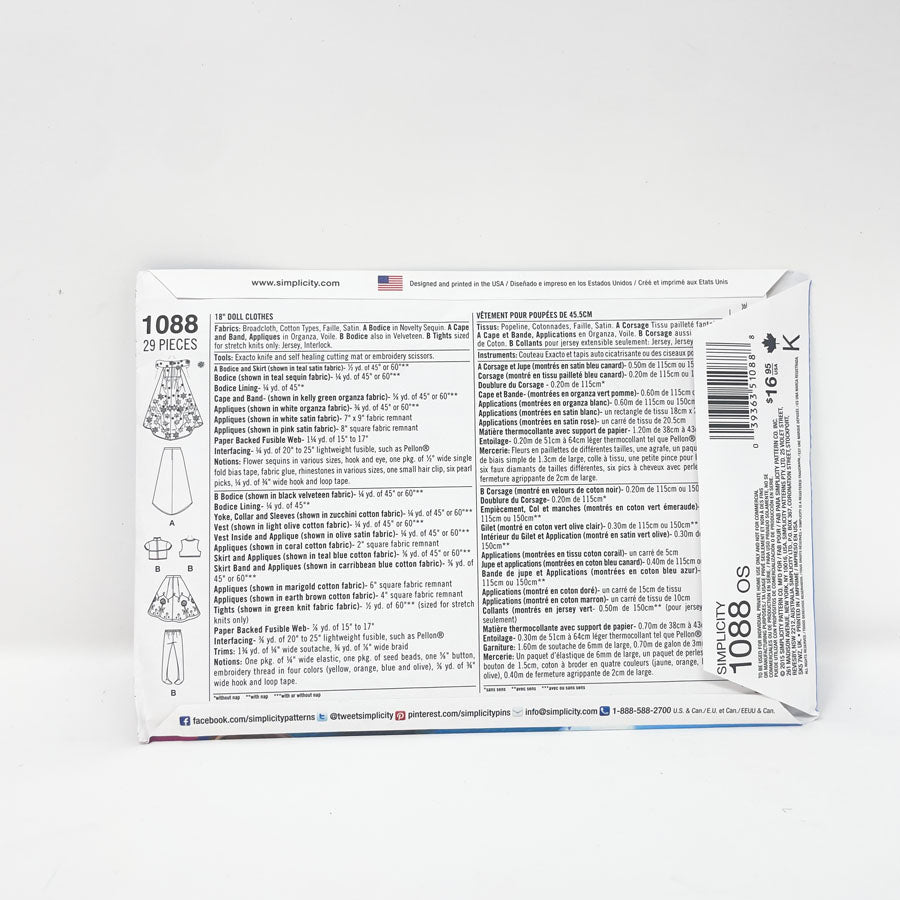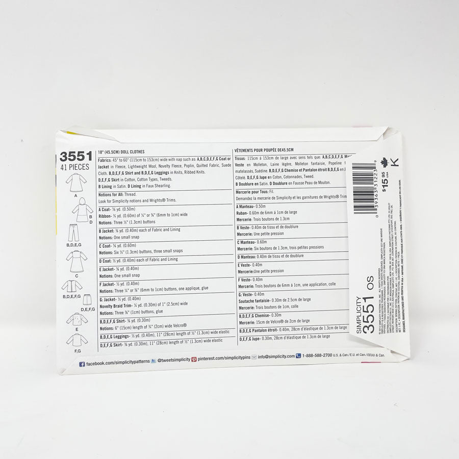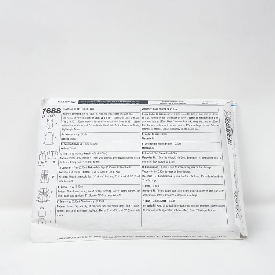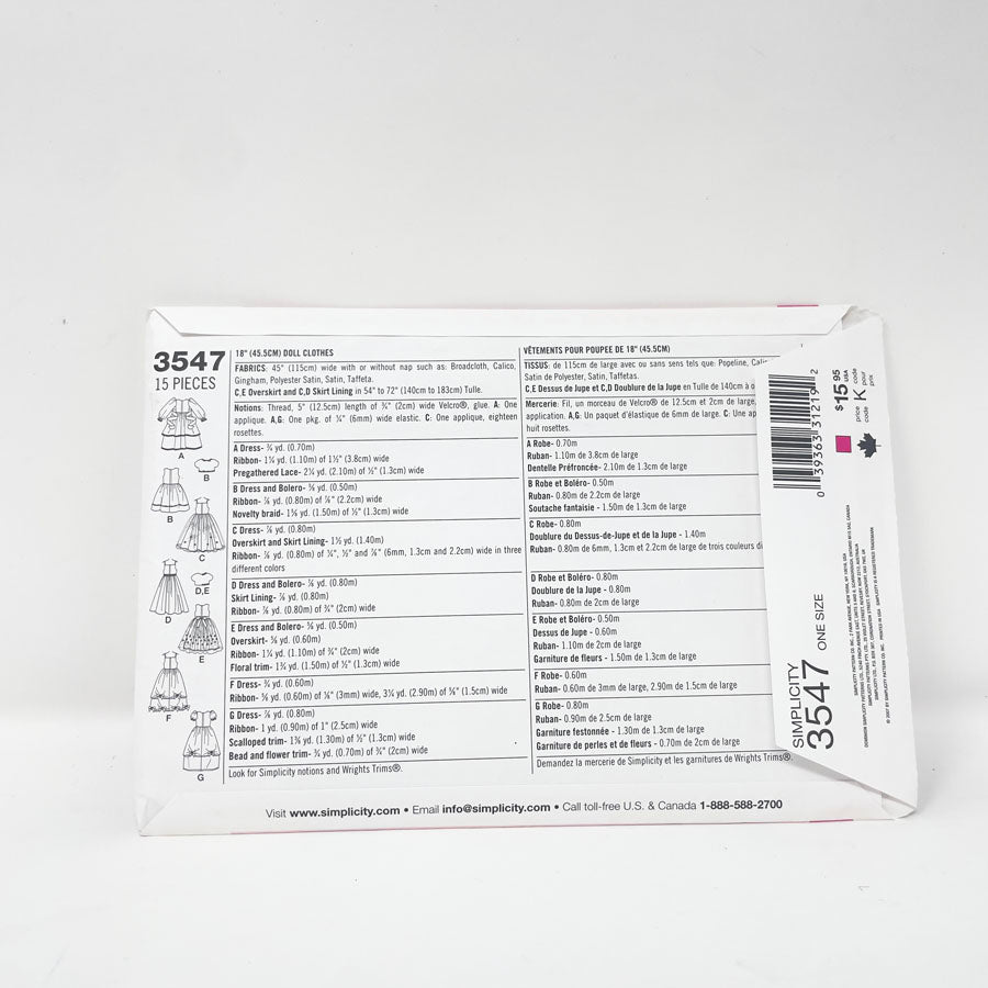 Assorted 18" Doll Clothing Patterns - Pick a Design