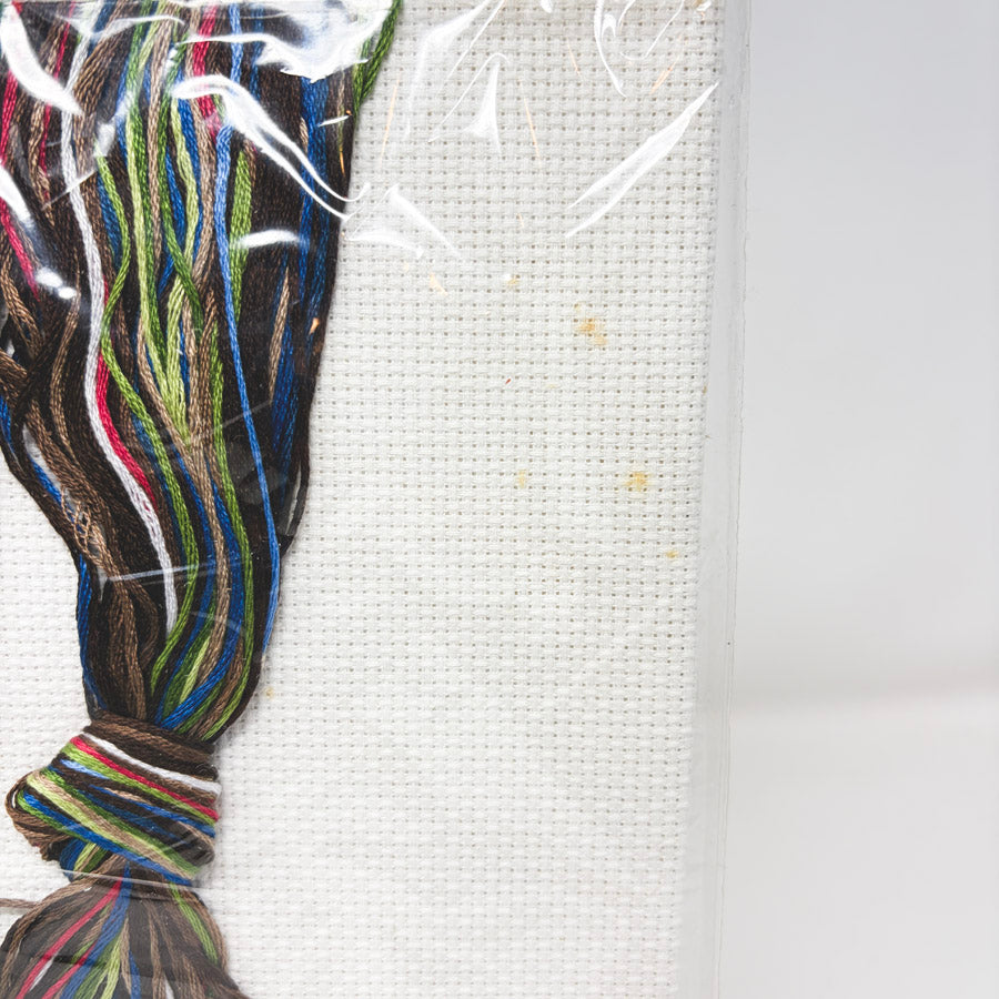Secondhand. The kit is sealed in the original package. There is foxing on the aida.