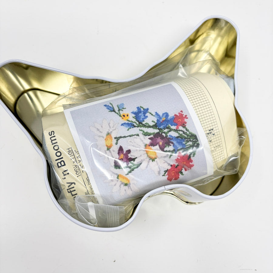 Butterfly n' Blooms – The Stitchworks Tin Collectible Cross Stitch Kit
