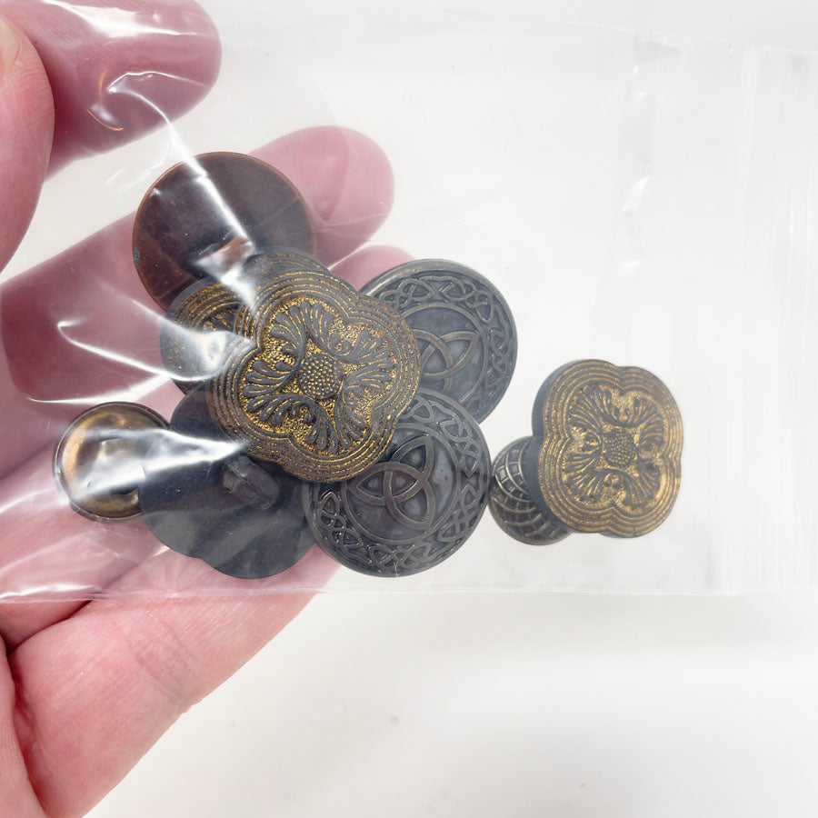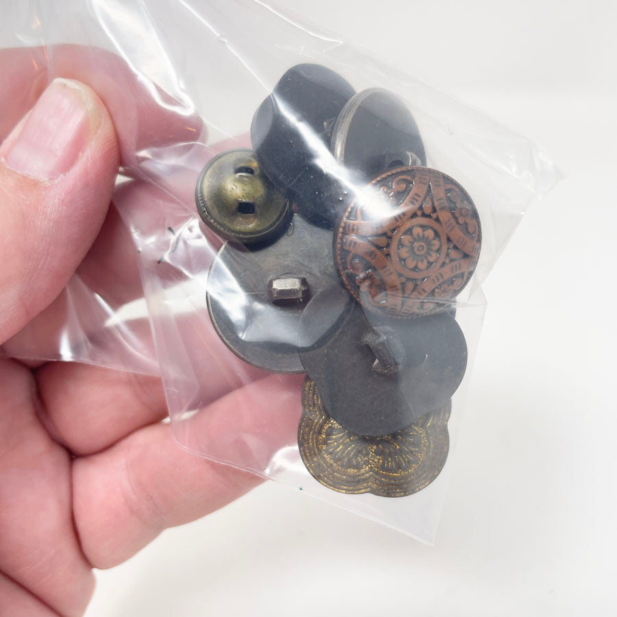 Copper, brass, and gold colored small bag of assorted shank buttons