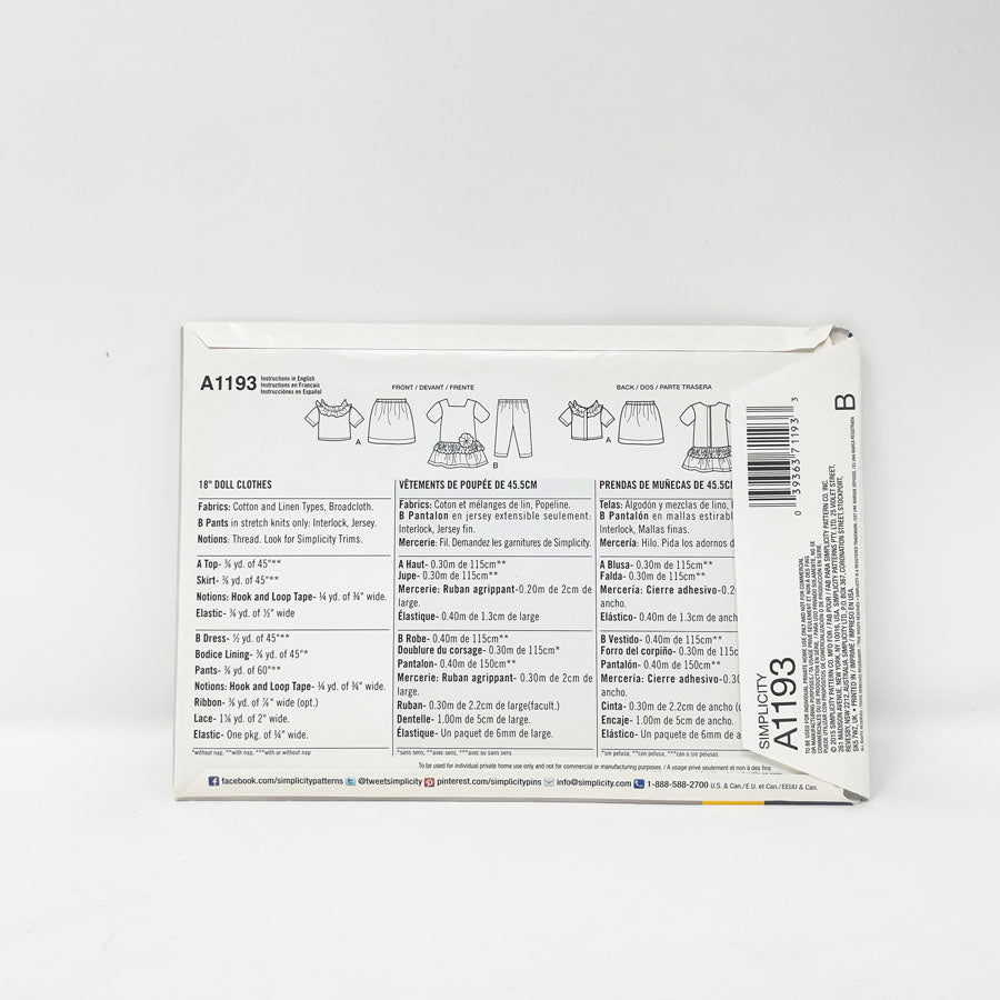 It's So Easy 18" Doll Clothing Patterns by Simplicity - Pick a Design
