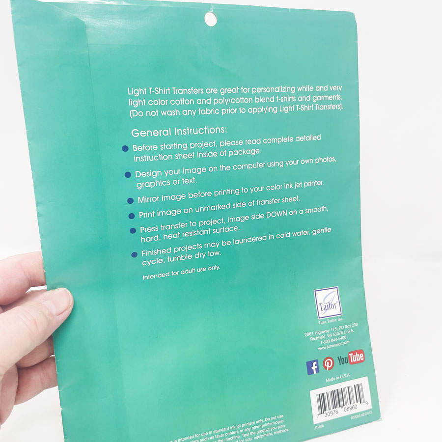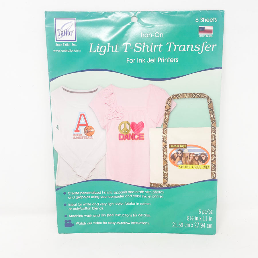 June Tailor Light T-Shirt Iron-On Ink Jet Transfer Sheets 8.5"X11"