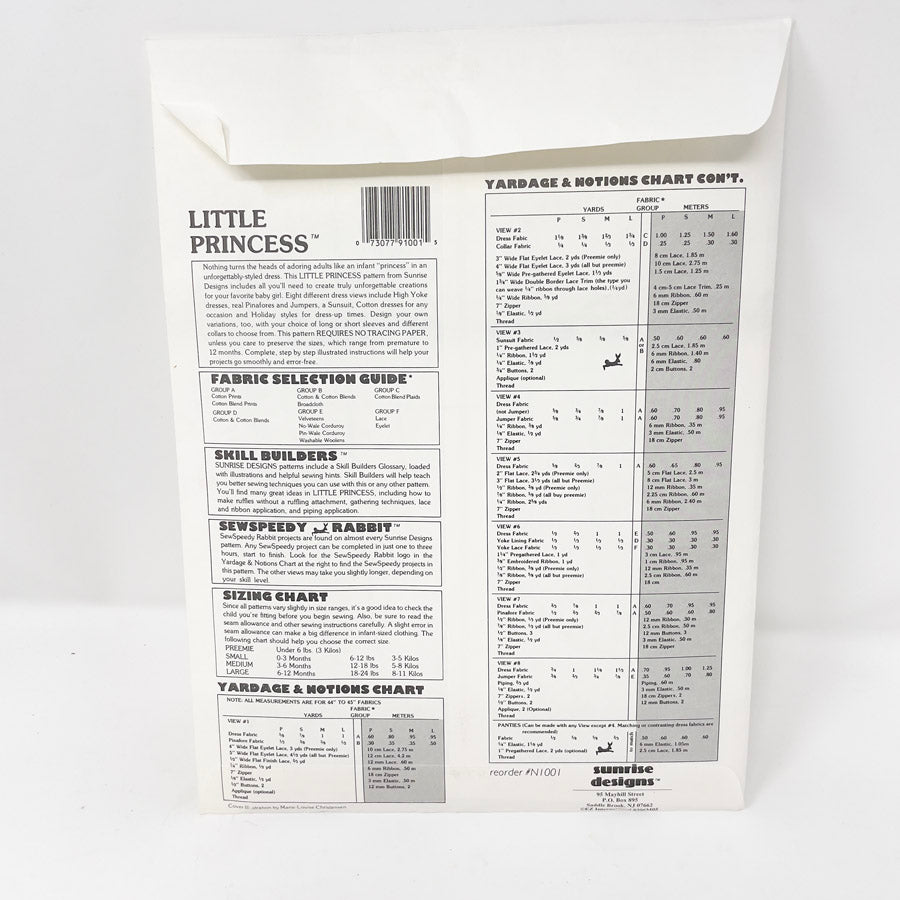 Little Princess (Preemie to 12 Months) Sewing Pattern by Sunrise Designs
