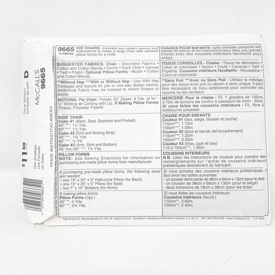 McCall's 9665 Sewing Pattern - Kid's Chair