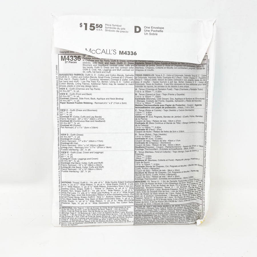McCall's M4336 Sewing Pattern - 18" Doll Clothing