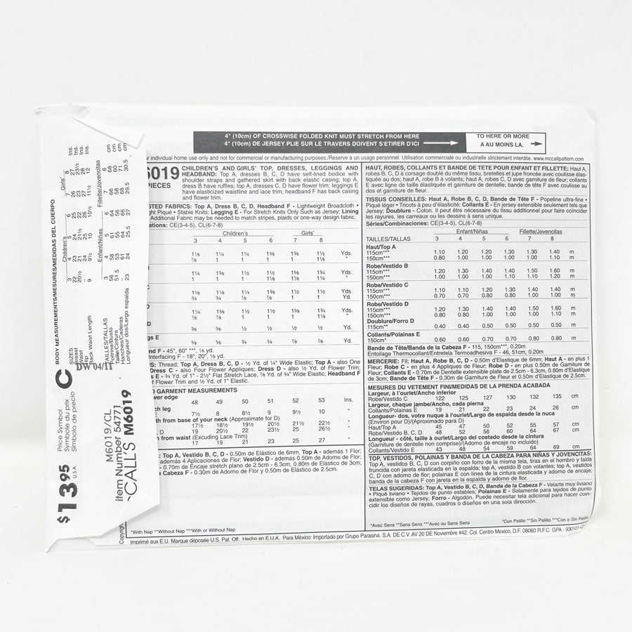 McCall's M6019 Sewing Pattern - Child's Top/Bottom (6-8)